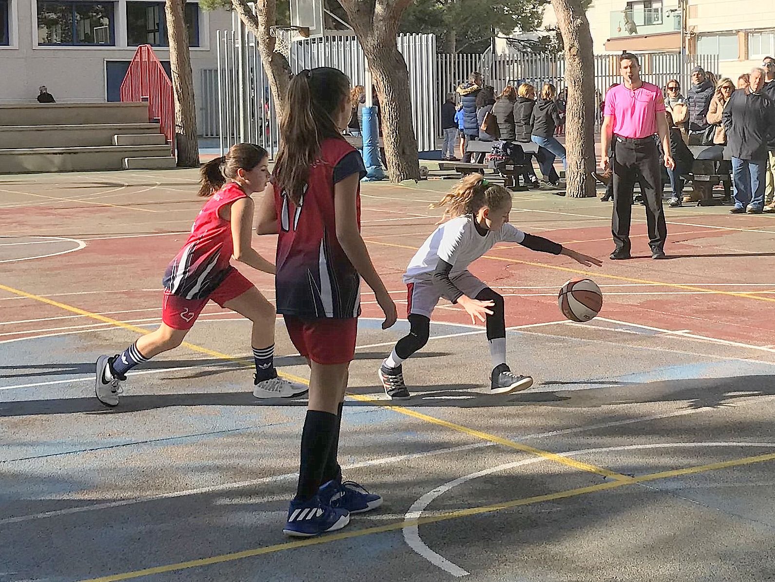 Garra y lucha. Así, como si fuera un comienzo de la típica película épica, es como hay que empezar esta crónica de partido; de los que hacen afición. Sensaciones de querer ganar, que hasta ahora queríamos evitar por el convencimiento de que estamos en periodo de formación y no es lo más importante; y así vamos a intentar mantenerlo un poquito más. Un equipo escolar en las que todas vamos a jugar 3 ó 4 cuartos y que va a aprender en cada entreno, en cada partido. Las que juegan mejor van a seguir mejorando, y las que no lo hacen tanto, que no se preocupen, van a alcanzarlas en unos meses; que nadie tenga ninguna duda, porque lo dan todo en cada entreno. Me soportan cuando les «achucho» incluso quizá más de lo que a veces luego me doy cuenta y no debiera (mil perdones). Para conseguir eso, si es que lo queremos, hay que acudir a todos los días de preparación y competición posibles y de eso, estoy muy contento. Hemos dado más preferencia a la técnica individual y juego en ataque y las dos últimas semanas hemos incidido un poco más la defensa, aunque quizá nos hemos pasado de frenada ya que acabamos 4 en pista, jaja (seguiremos puliendo). De no ser así, quizá podríamos haber mantenido la ventaja de 3 puntos con la que afrontábamos el último cuarto. No obstante, la defensa fue espectacular y plantamos cara en todo momento al mejor alevín del Olivar. Jugadas y tiros de calidad que cada vez son menos esporádicos nos van a hacer disfrutar mucho este año. Oleada de fotos buenísimas para recordar. Buena semana 🙂