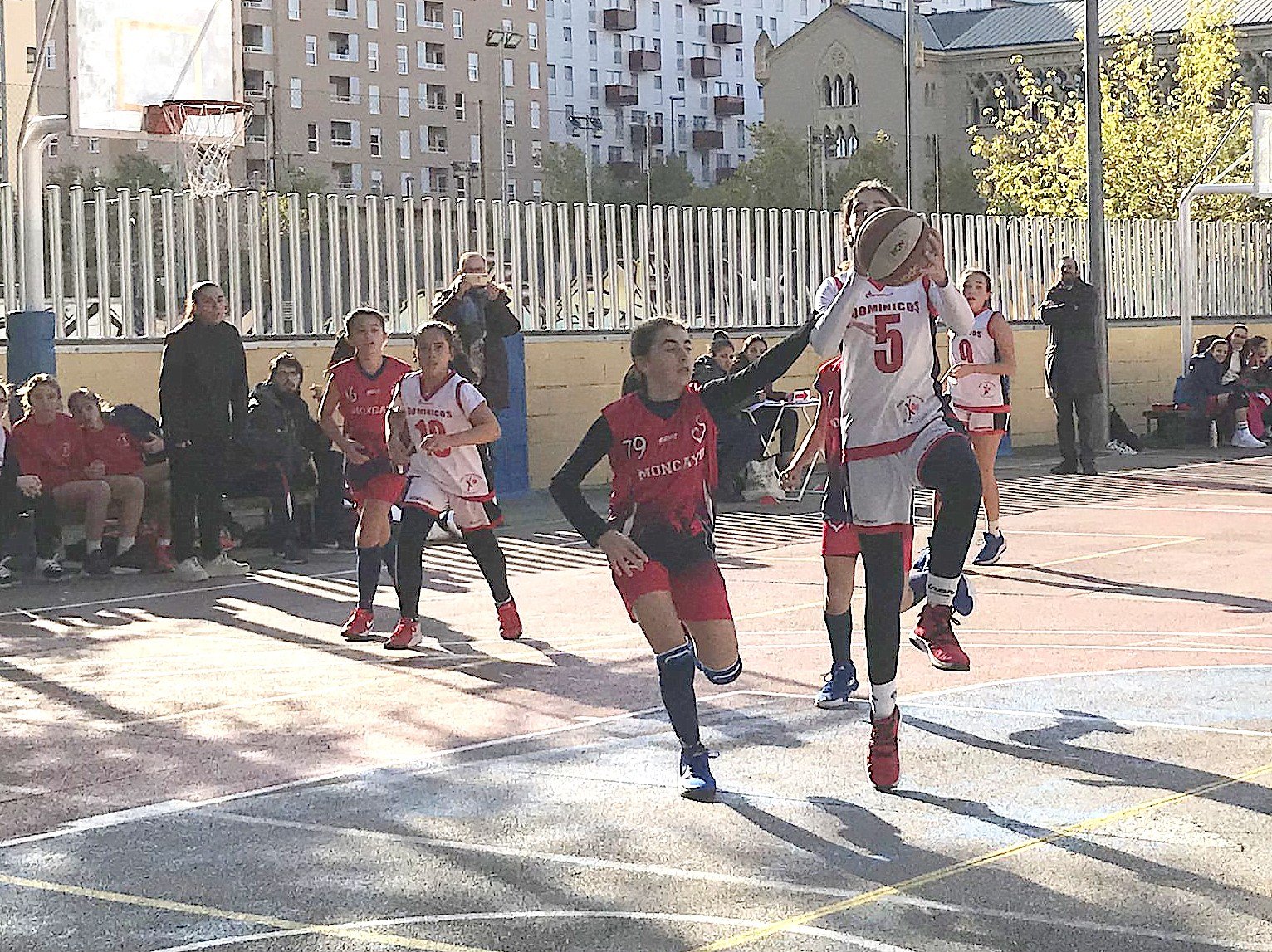 Fuerte derrota  motivada por la intensa presión del rival durante todo el partido y por una intermitente defensa de ayudas propia. Rival muy uniforme con jugadoras muy grandes y muy físicas. Sin embargo el resultado no hace honor al enorme trabajo y coraje de todas las niñas. Han luchado como jabatas compitiendo durante muchos minutos de tú a tú contra uno de los mejores equipos de la competición. A pesar de estas primeras derrotas la ilusión del equipo es muy fuerte y conseguiremos revertir esta situación. Seguiremos trabajando con intensidad profundizando en nuestros puntos débiles. Me siento muy orgulloso de estas niñas y de llevar el nombre de Dominicos con ellas.
